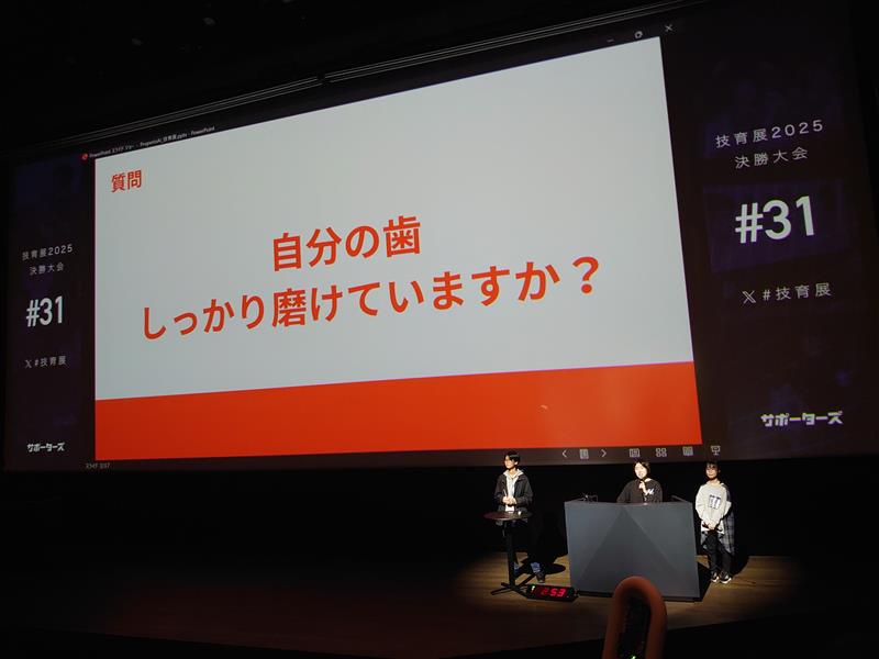「杜のシカシカ」は、AIとセンサを用いて歯磨きにおける磨き残しをスマホアプリで可視化する「ProperioAI」というシステムについて3分間のピッチを行いました。