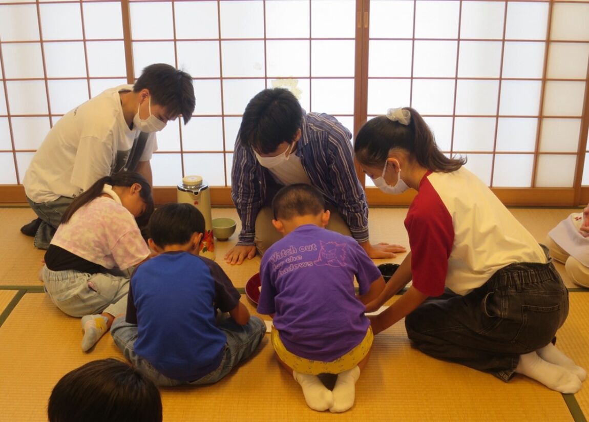 仙台高専名取キャンパスの茶道部と、愛島児童館を利用する小学生によるお茶会が、2025年9月3日(水)と4日(木)の2日間にわたり、愛島公民館の和室で開催されました。