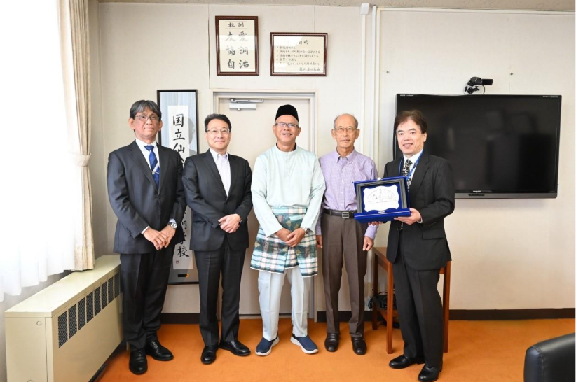来校されたのは、1987年3月に宮城高等専門学校金属工学科を卒業されたGiman Bin Daud(ジマン)さんです。当日は、当時担任をされていた池田千里名誉教授にもご同席いただき、校長先生と卒業後のご活躍などについて歓談されました。