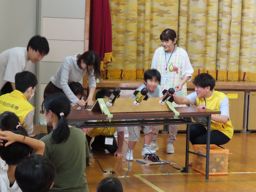 実施後のアンケートでは「しらなかったことがしれてよかったです。(1年生)」,「ロケットがいっぱいとんで楽しかったです。またきてください。(5年生)」,「子どもが楽しみながら参加できて良いです。これでもっと理科に興味を持ってくれそうです。ありがとうございました。(保護者)」,「子どもが楽しそうに授業を受けていたので良かったです。また将来的な進路として,高専という選択肢も知れました。(保護者)」といった感想がありました。