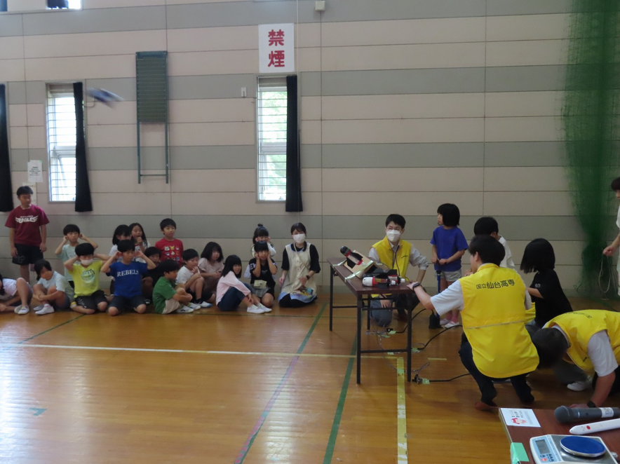 仙台高専広瀬キャンパスでは,教育研究技術支援室の職員が中心となり「出前授業」を企画・実施しています。これは,近隣の小・中学校や市民センターのイベントへ訪問し講義・実験を行うもので,科学への興味を誘うとともに,仙台高専をPRすることを目的としています。