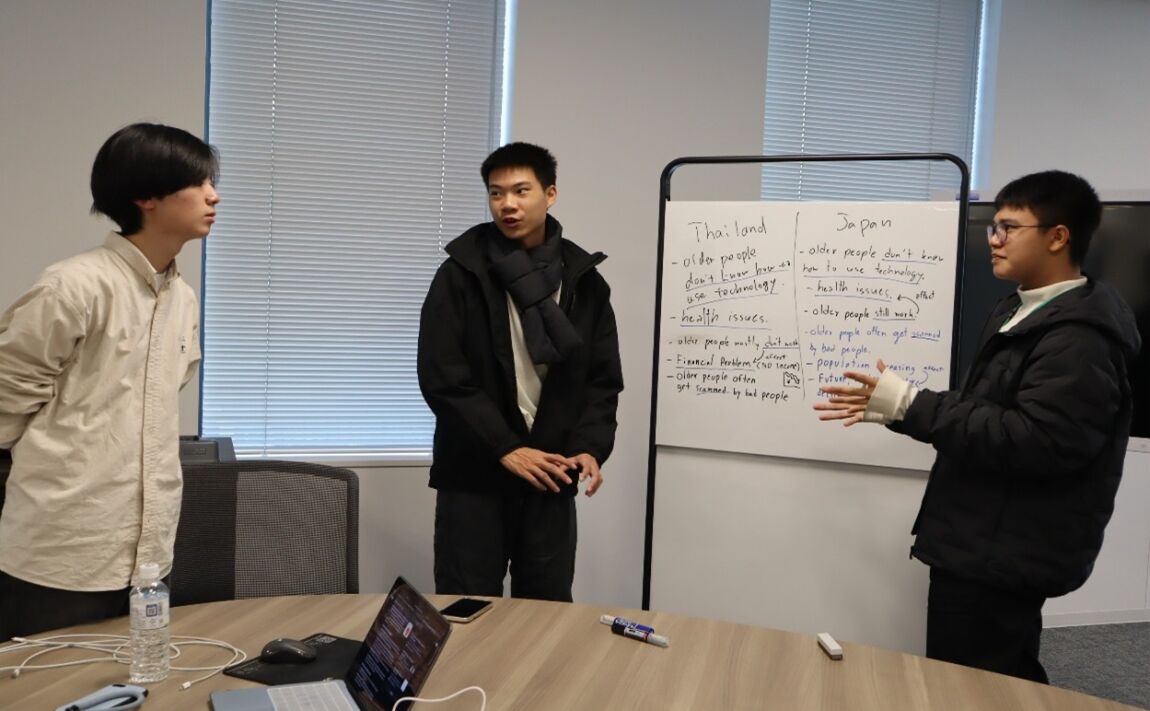 期間中は、広瀬キャンパスや仙台ベースで、タイでも問題になっている少子高齢化について、仙台高専の学生と協力しながら、問題の解決に役立つようなスマートフォンアプリの開発に取り組みました。