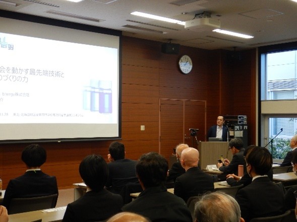 1日目は、開会式で仙台高専の橋爪校長、本シンポジウムを共催している仙台高専の企業協力会である産学連携振興会副会長の三方様から挨拶をいただいたのち、AZUL Energy株式会社 最高製品責任者 奥圭介様から「社会を動かす最先端技術とものづくりの力」と題した基調講演がありました。