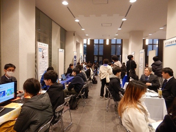 2日目は、110件のポスター発表が行われました。学生同士のディスカッションはもちろん、来場した教員や企業の方からも質問を受け、一生懸命説明する姿が至る所で見られ、例年にも増して充実した発表会となりました。