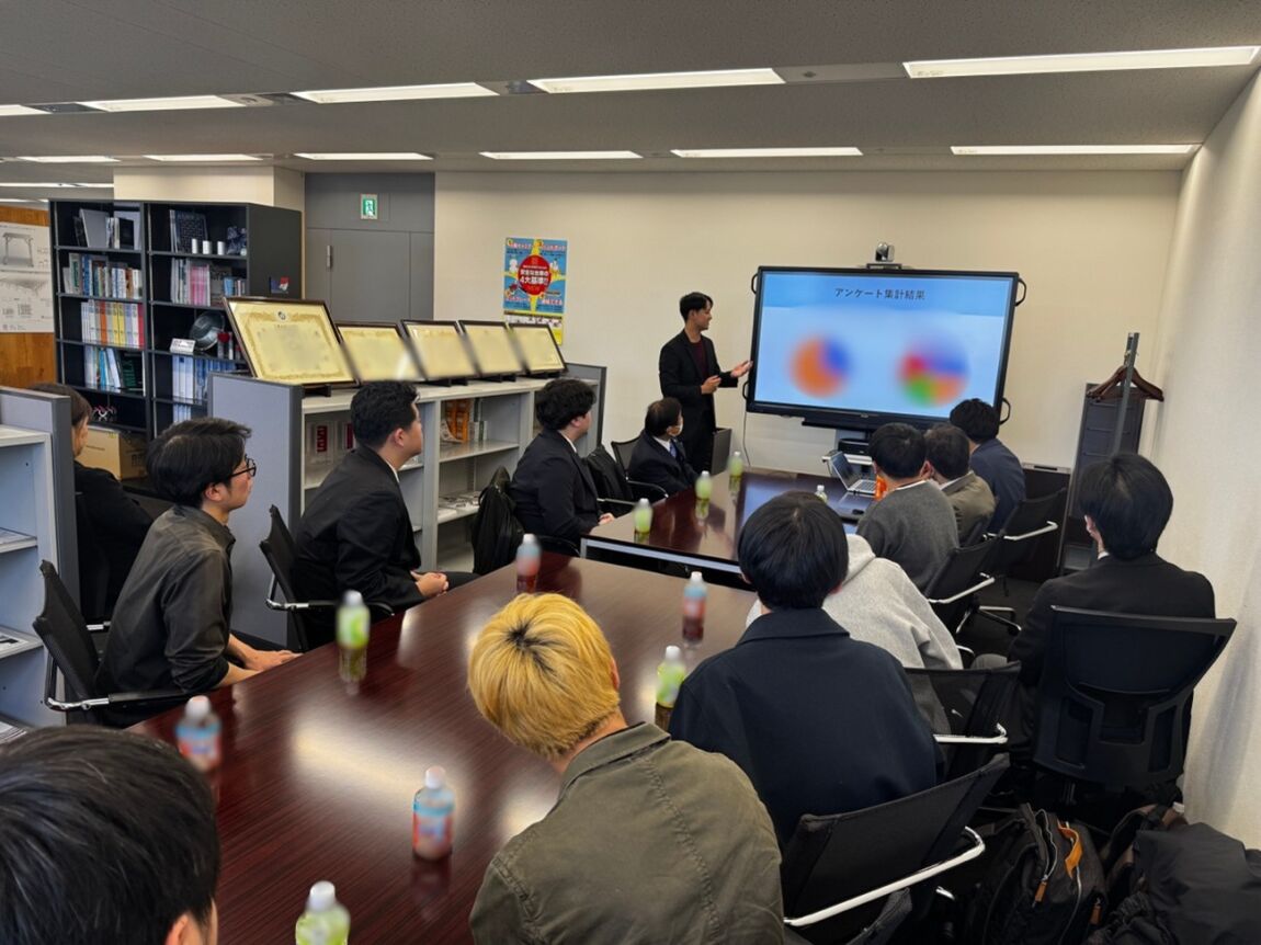 頂きました寄附金を活用した「夢」実現プロジェクトの取組状況および成果について、学生及び教職員よりジー・オー・ピー株式会社 代表取締役 千田豊治様へ直接報告を行いました。