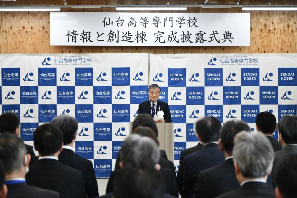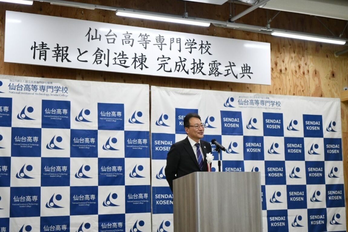本棟は、本校が令和5年度に文部科学省の「大学・高専機能強化支援事業」に選定されたことを受け設置した「情報と創造コース」の教育拠点です 。令和8年度からの本格運用を前に、国立高等専門学校機構の谷口功理事長出席のもと、山田司郎名取市長、笠松富二夫同窓会会長、および白戸敏彦後援会会長をご来賓にお迎えし、完成を祝う晴れやかな雰囲気の中で式典が執り行われました 。