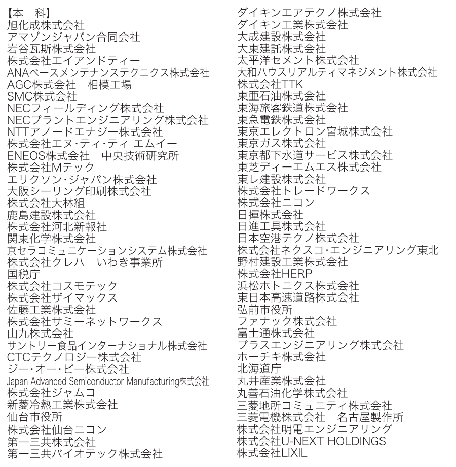 建設業…19(9)名、製造業…49 (9)名、電気・ガス・熱供給・水道業…8(1)、情報通信業…15名、運輸業・郵便業…5(3)名、卸売・小売業…2名、不動産業…4(1)名、学術研究・専門・技術サービス業…6(2)名、サービス業…8(2)名、公務…4名