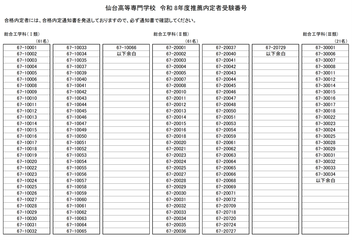 令和8年度入学者選抜(推薦による選抜)判定結果