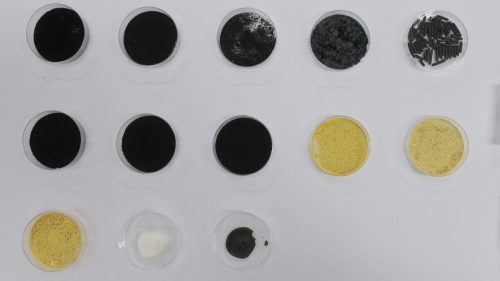 具体的には、まず乾燥した出がらしや柑橘類の皮など10種類程度の原料を粉末状にしてガラス容器に入れ、真空ポンプで空気を除いたのち、バーナーであぶって蒸し焼きにして炭を作りました。