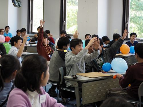 名取キャンパスを会場として、広瀬・名取両キャンパス共通講座「サイエンス・セミナー」を開催しました。今回講師としてお招きした先生は、NHK Eテレの「カガクノミカタ」や「考えるカラス」の番組製作にも携わっておられる滋賀大学教育学部の加納圭准教授です。先生は、これまでに「科学の考える力」や「科学の見方」を養う教育プログラムを開発されており、身近な現象に隠れた「なんで?」という疑問を深く掘り下げたセミナーを多数実施してこられています。今回のセミナーでは、「お盆と風船」と「ゴマ塩問題」の2つテーマについて、受講生51名とそのご家族14名のみなさんに考えてもらいました。初めのテーマ「お盆と風船」では、お盆の上に乗せた風船を同時に落とすと、お盆と風船はどうなるのか?という実験です。今回アシスタントを努めていただきました加納研究室の木下さんが実演すると、受講生はその結果に興味津々ですぐに同じ実験を真似してみます。そして、どうしてそうなるのか?まず受講生どうしで相談して仮説を立て、そこに加納先生がコメントを加えて、さらに仮説の検証実験を繰り返していくと、受講生どうしの議論もどんどん熱を帯びていきました。中には、教室を飛び出して実験をする受講生も。そして、受講生に負けず劣らず保護者チームの議論も白熱!最初のテーマから教室内は、楽しんで考える熱気に溢れました。さらにセミナーは、熱気冷めやらぬ中、次のテーマ「ゴマ塩問題」へと続きます。ゴマと塩を容器の中で振り混ぜると均一に混ざったゴマ塩はできるのか?ここでは、ゴマ塩のモデルを使っての実験です。先ほどの「お盆と風船」の実験よりも実験の難易度も増します。うまくゴマ塩モデルを使って実験を進めると、今度はゴマ塩モデルを振る音で教室内は一気に賑やかに。そして、受講生は自分たちのアイディアをみんなの前で次々と披露していきます。この時間だけでも受講生がどんどん積極的になっていく様子が分かります。そして最後に加納先生は、受講生に「科学のやり方」について語りかけます。ここまでの体験を経て、受講生も加納先生の伝えたいことを自然に理解しているようでした。さらに加納先生は、保護者の方に向けた創造性や科学的思考力を育てるにはどうしたらよいか、といったことにも言及されて、2時間のとても濃密なセミナーは幕を閉じました。このセミナーでは、実験を観察して仮説を立て、それを検証する実験を行って、その結果を考察するという科学の考え方を、体験をとおして受講生が無理なく身に付けることができたと感じました。さらに、終了後の受講生のアンケートでも、科学的な考え方や実験の仕方に興味を持った、しっかり考えることを重視していたことがすごく良かった、分からないことを考えることが楽しくて探究心が強まった、身近にあるものにも「なぜ?」がたくさんあるということに気がついた、といった感想が寄せられ、受講生にとって大きな刺激を受けたことが伺えました。今回のセミナーをとおして、思い思いの考えで実験を繰り返す受講生を見つめる加納先生の優しい眼差しがとても印象的でした。加納先生、木下さん、本当にありがとうございました。