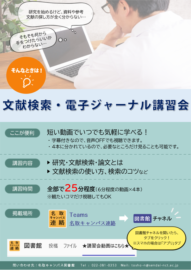 卒業研究などに役立つ、文献検索や電子ジャーナルの使い方を学ぶことができます!