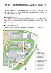 図書返却ポストは3号棟(総合科学教育棟)正面玄関ピロティに移設しました。
