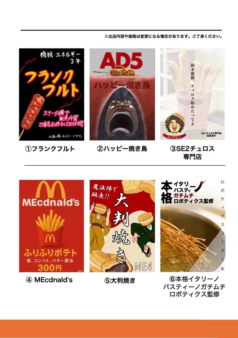 飲食店等の出店も予定しており、多くの方々にご満足していただける高専祭を企画しています。